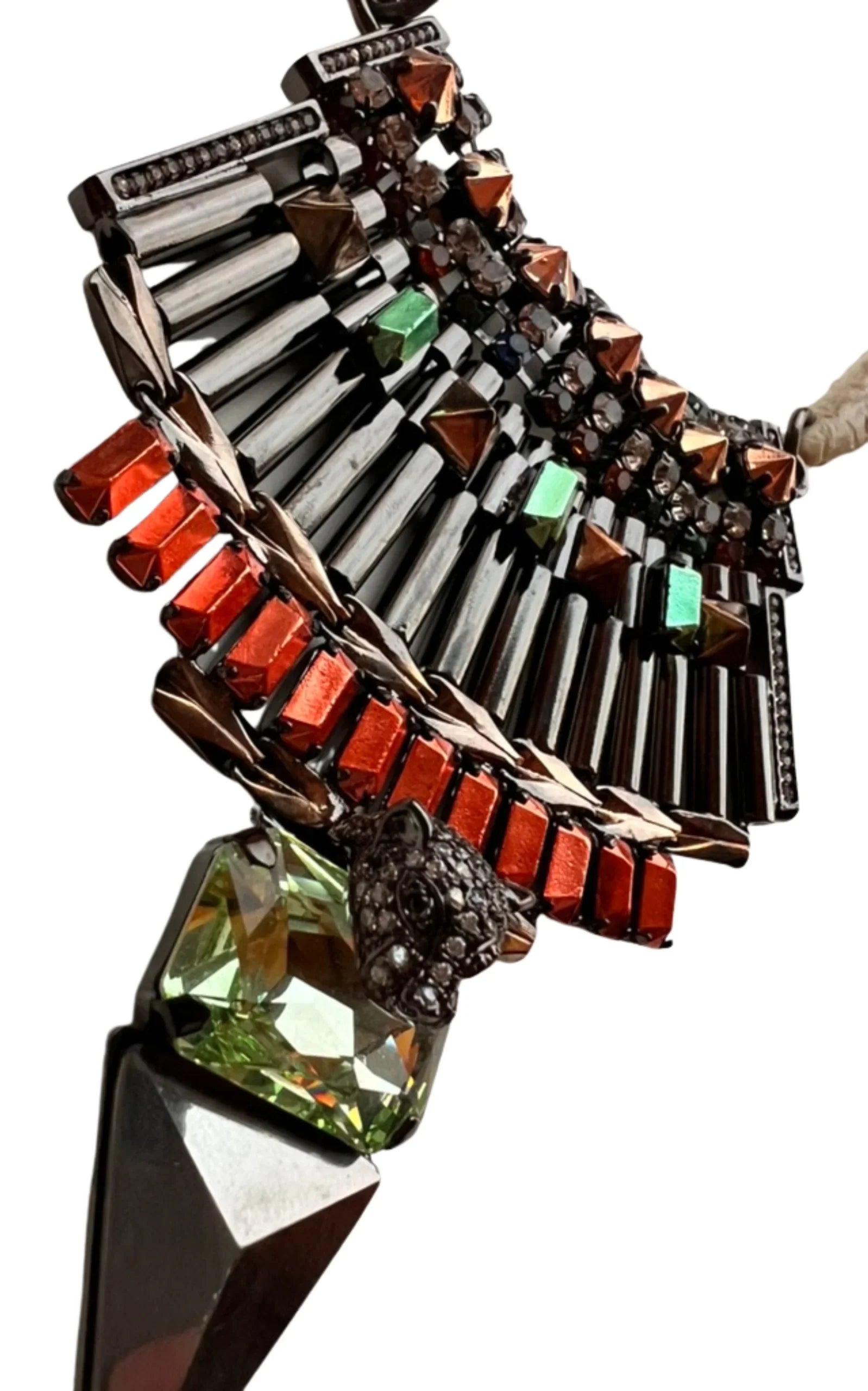 Gold Crystal Tribal Leopard Head Bib Necklace