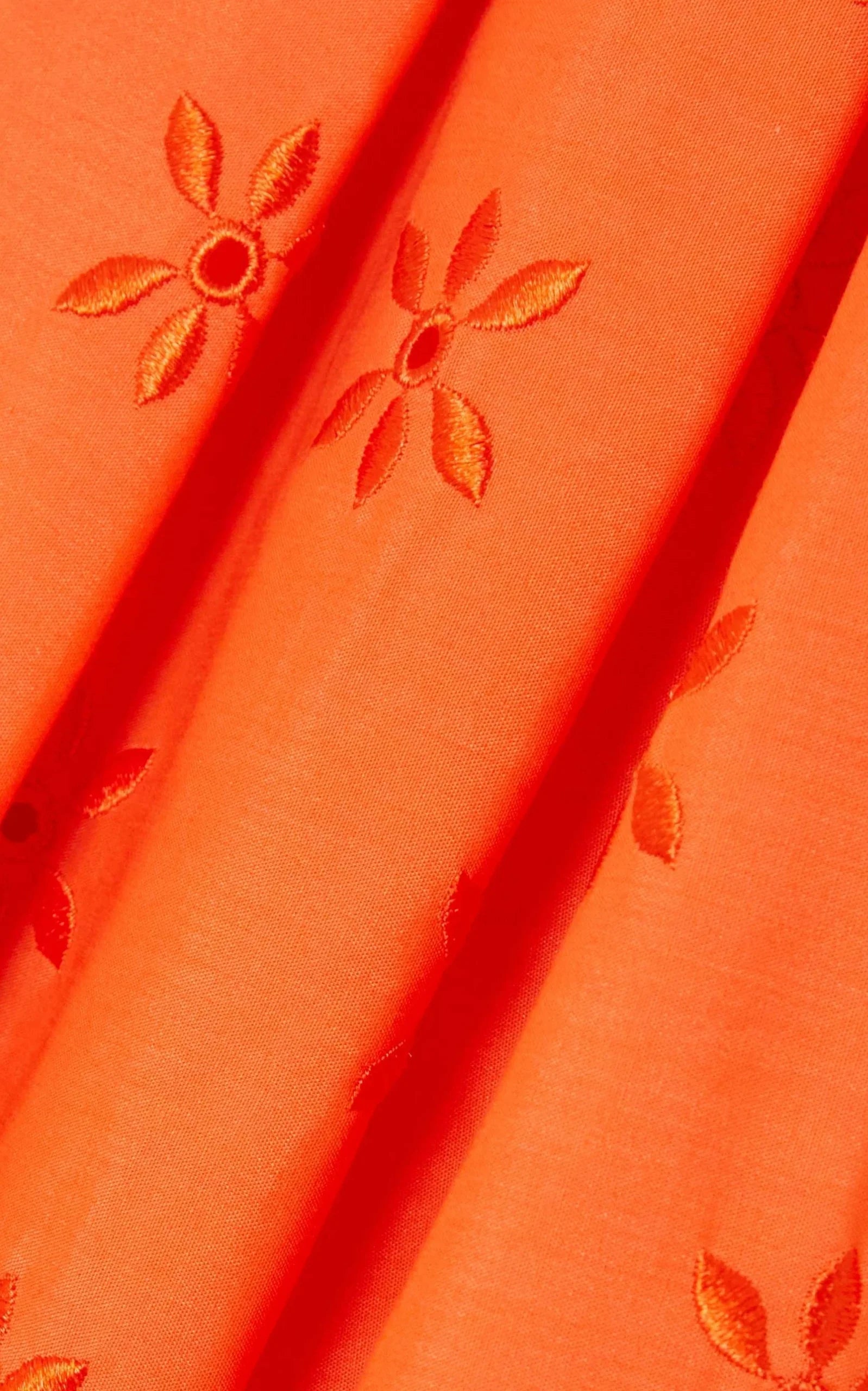 • Orange broderie anglaise poplin with tonal floral embroidery