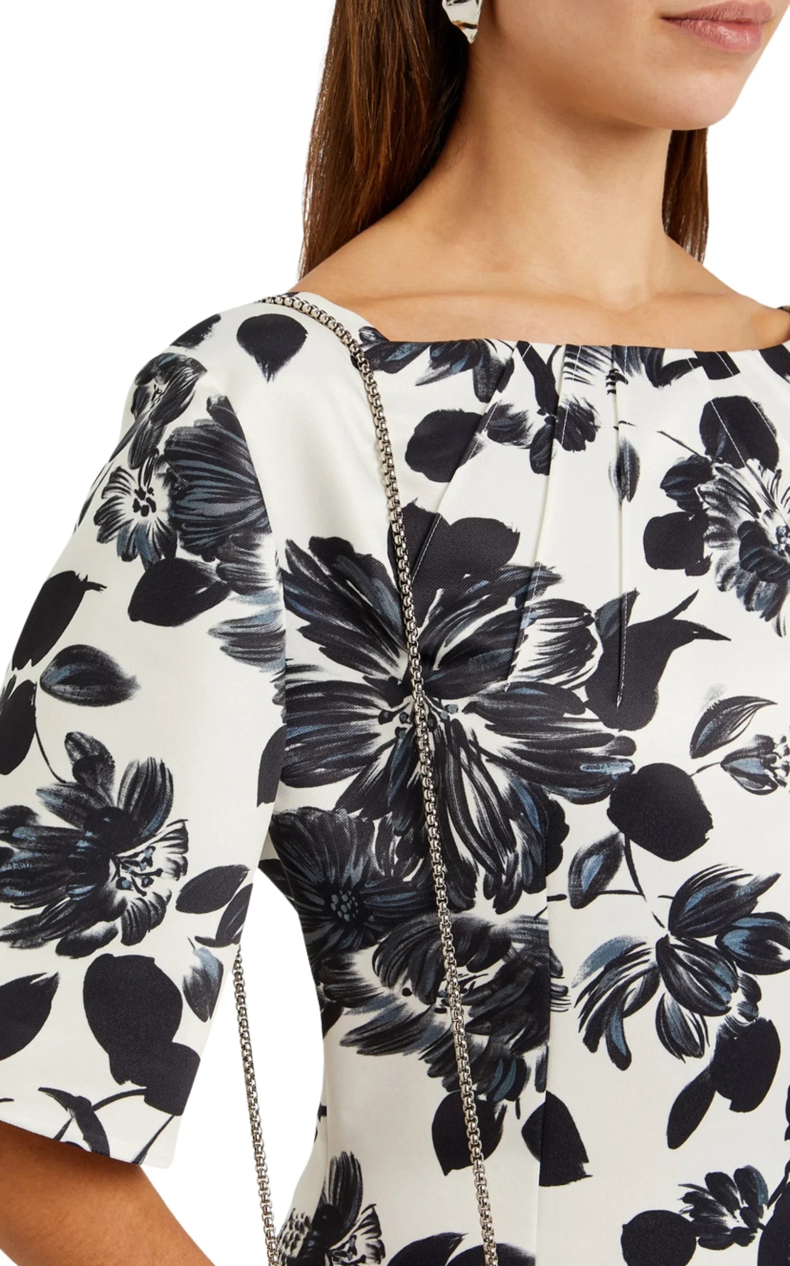 The Emilia Wickstead Kora midi dress embodies modern romance with its clean lines and graceful floral motif. A bateau neckline and scoop back balance modesty and allure, while pintucked details highlight the brand’s precision tailoring. Its polished midi length and lustrous twill fabric ensure a refined look that transitions seamlessly from daytime gatherings to evening celebrations.
