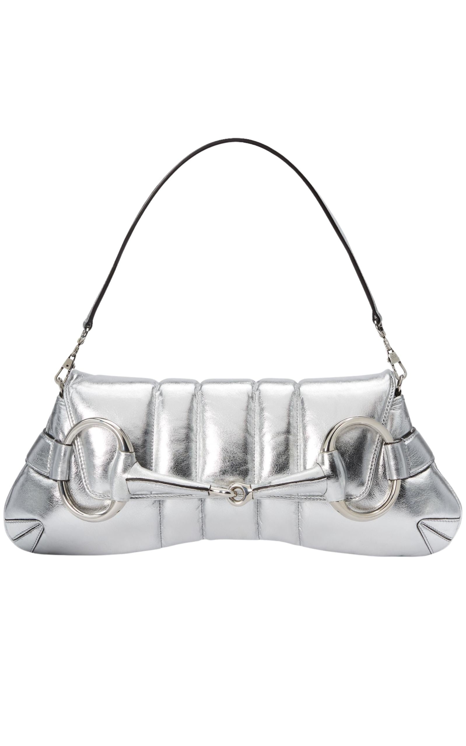 Gucci Silver Horsebit Chain Medium Shoulder Bag