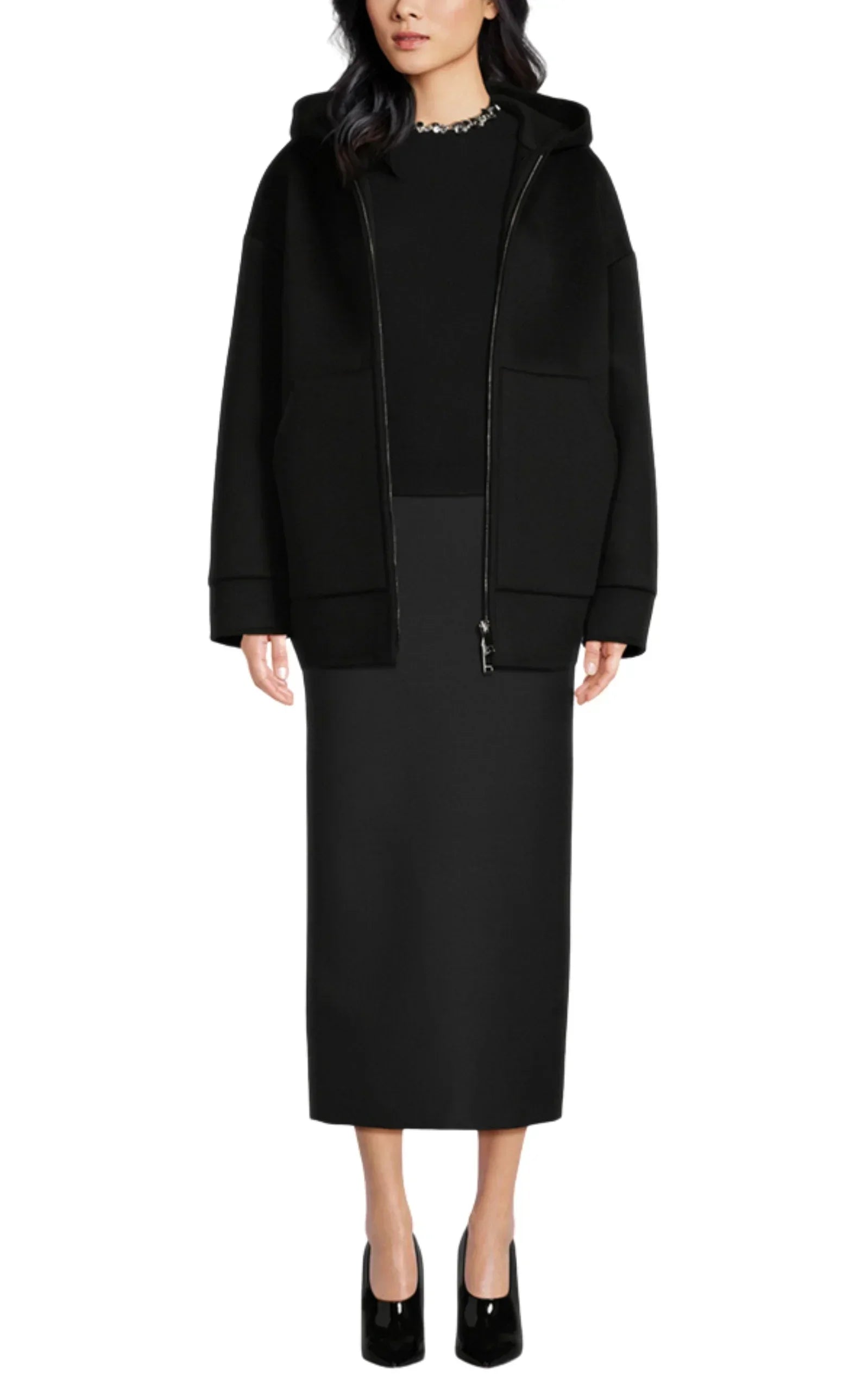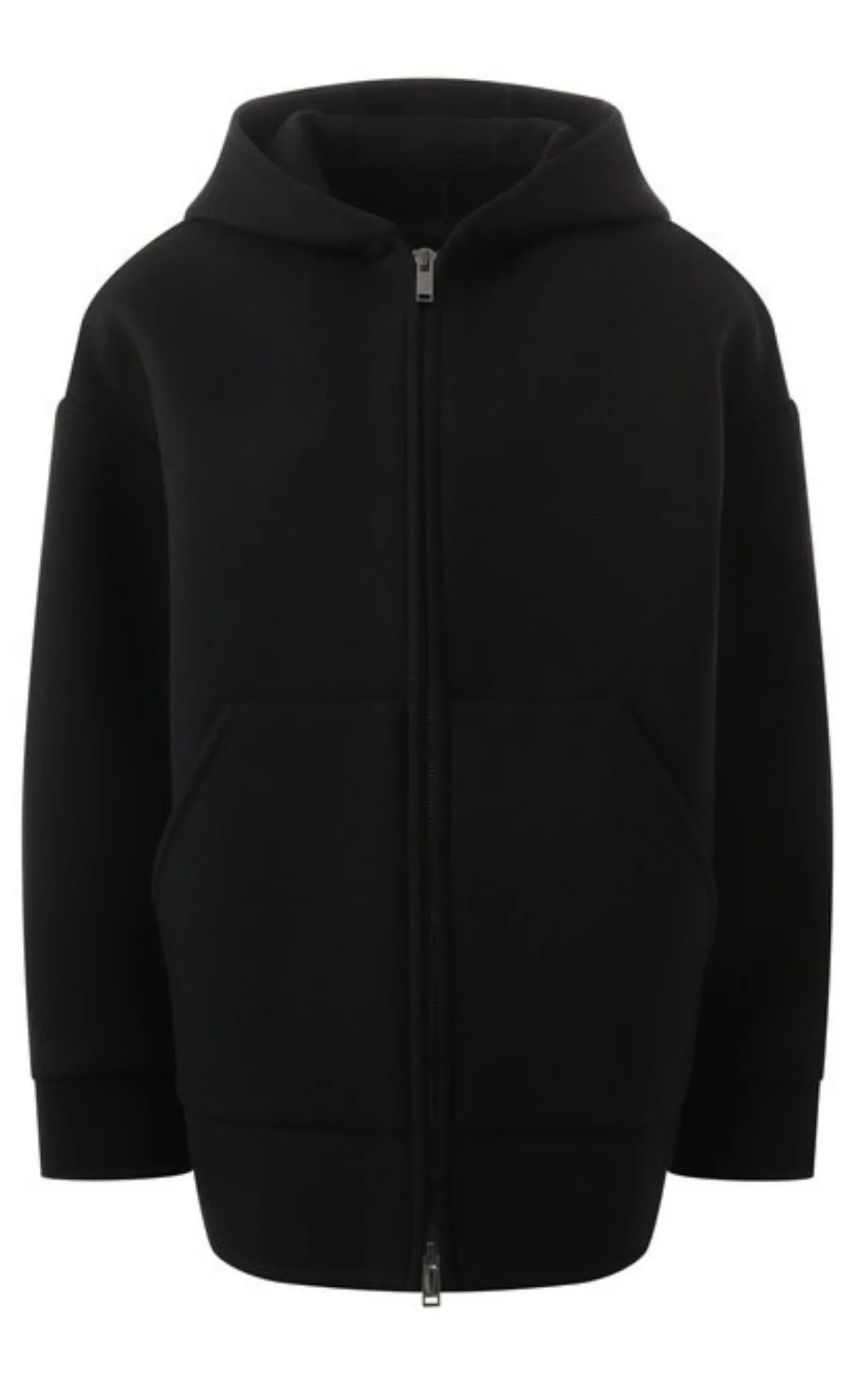 This Valentino hoodie jacket merges casual streetwear aesthetics with high-fashion craftsmanship. The luxurious wool-cashmere blend ensures warmth and comfort, while the oversized silhouette adds a contemporary edge to any look.