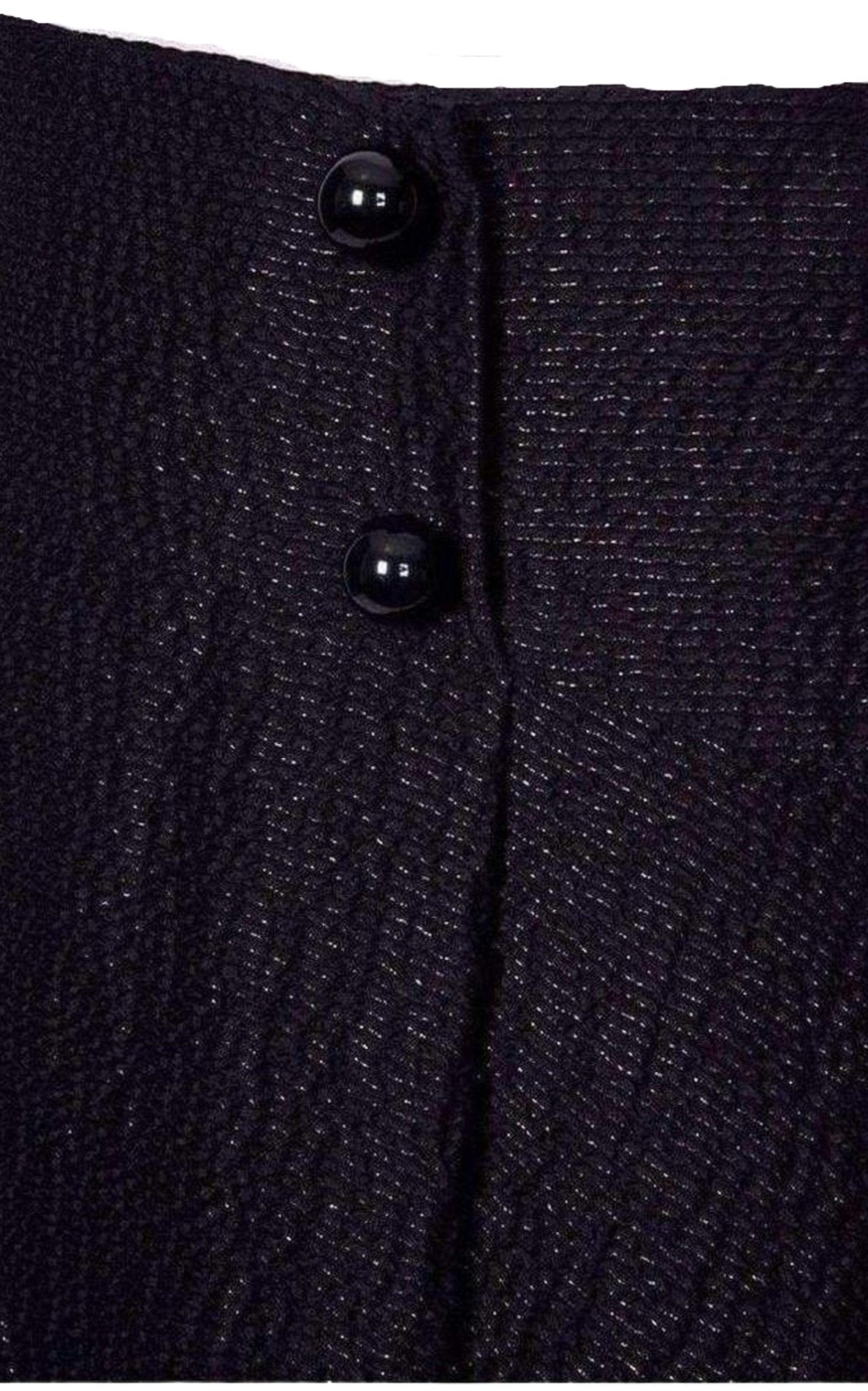 مصنوعة من مزيج الحرير الأسود ومزينة بنقاط فضية لخلق لمعان وملمس خفيفين، تتميز التنورة بحافة مكشكشة رقيقة، وهي سهلة الارتداء لخلق صورة ظلية جذابة للغاية.