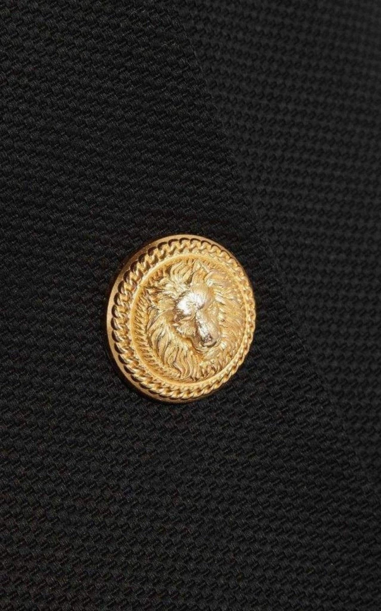 صُنعت هذه القطعة من القطن الناعم مع قليل من المرونة، وقد تم قصها بطول قصير مثير وتتميز بأزرار ذهبية كبيرة في الأمام، مما يمنحها إحساس بالمان الكلاسيكي.