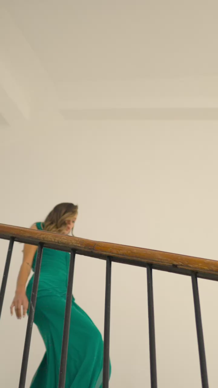 فستان كوكتيل أخضر بتصميم أمواج ذهبية
