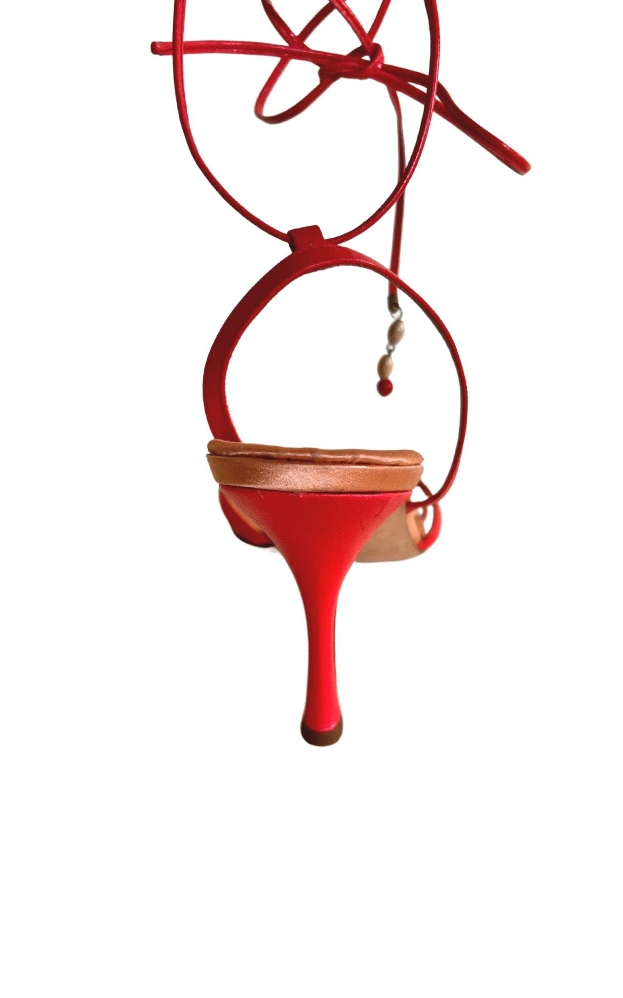 Leather covered stiletto heel.