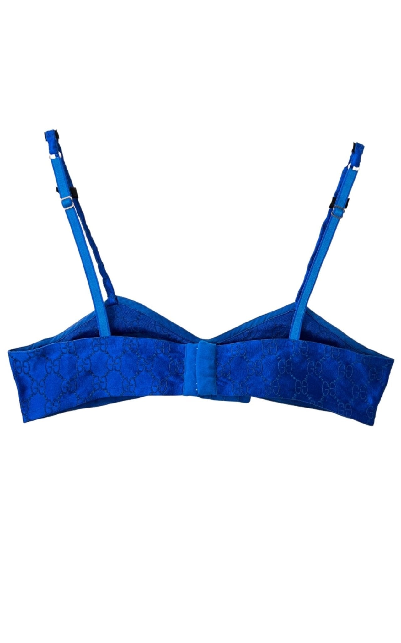 تبدو حمالة الصدر هذه من غوتشي رائعة للغاية عند ظهورها من تحت سترة أو بلوزة شفافة. مصنوعة من قماش نابض بالحياة مصنوع من حرير الساتان الأزرق، ومطرز بشعار العلامة التجارية "GG"، ويحتوي على درزات موضوعة بشكل مثالي لإعطاء رفع خفيف بدون حشو أو أسلاك.