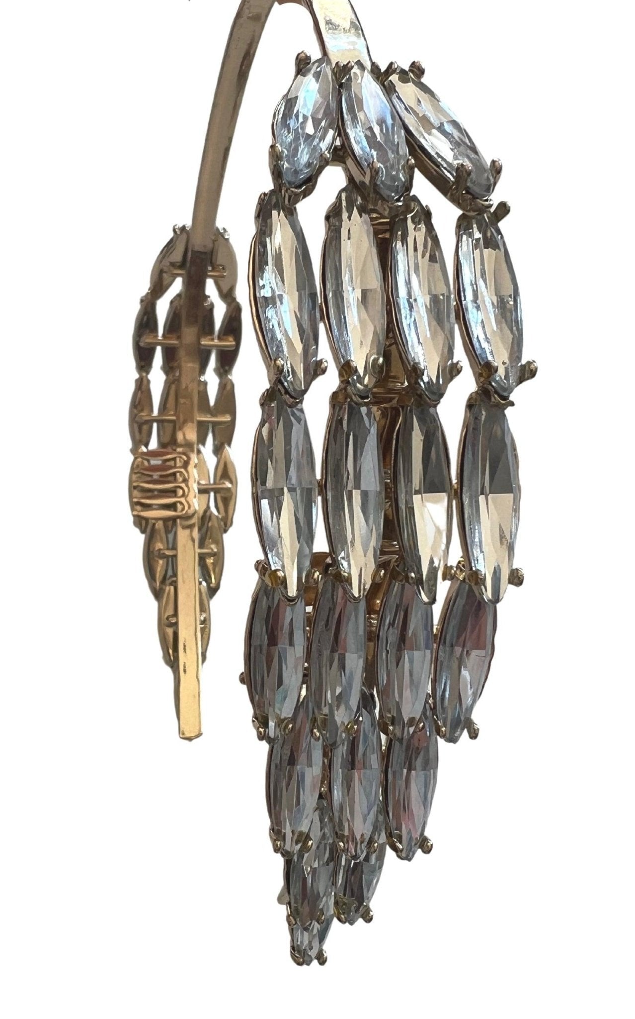 For day-to-night ethereal elegance, accessorize with this delicate headpiece adorned with rhinestones.