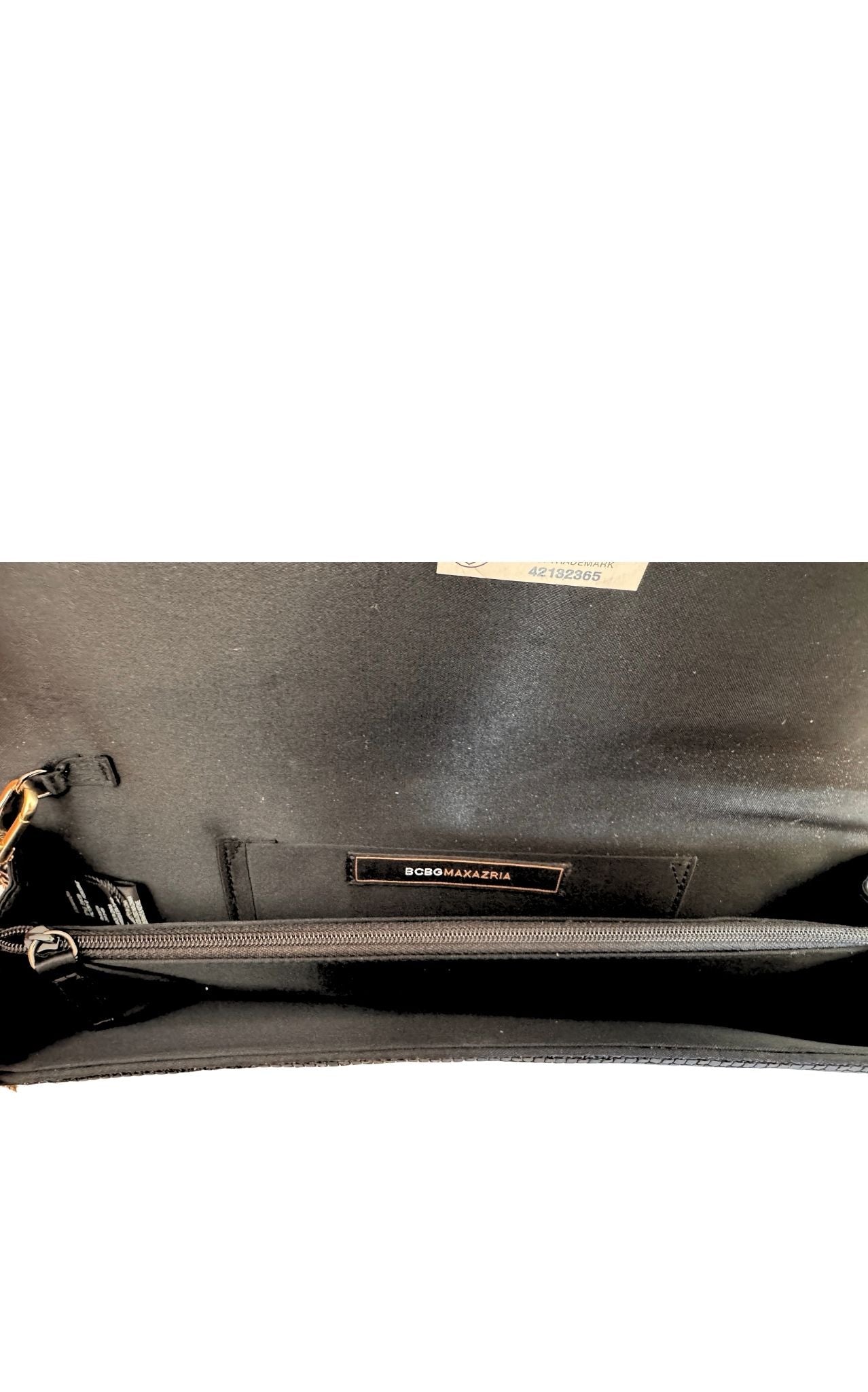 This BCBG Max Azria metal mesh quilted clutch delivers high-impact evening texture through a refined balance of shine and structure. Crafted from black metallic mesh arranged in a quilted grid, the elongated silhouette creates dimensional light reflection while maintaining flexibility and softness against the frame.