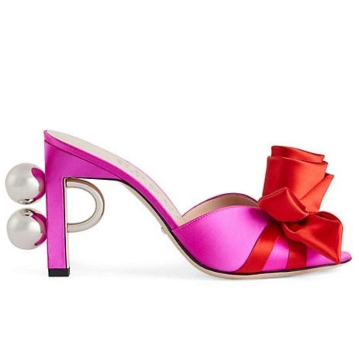 Made in Italy, they feature rose appliques at the toe straps and bold silver-tone hardware at the heels.