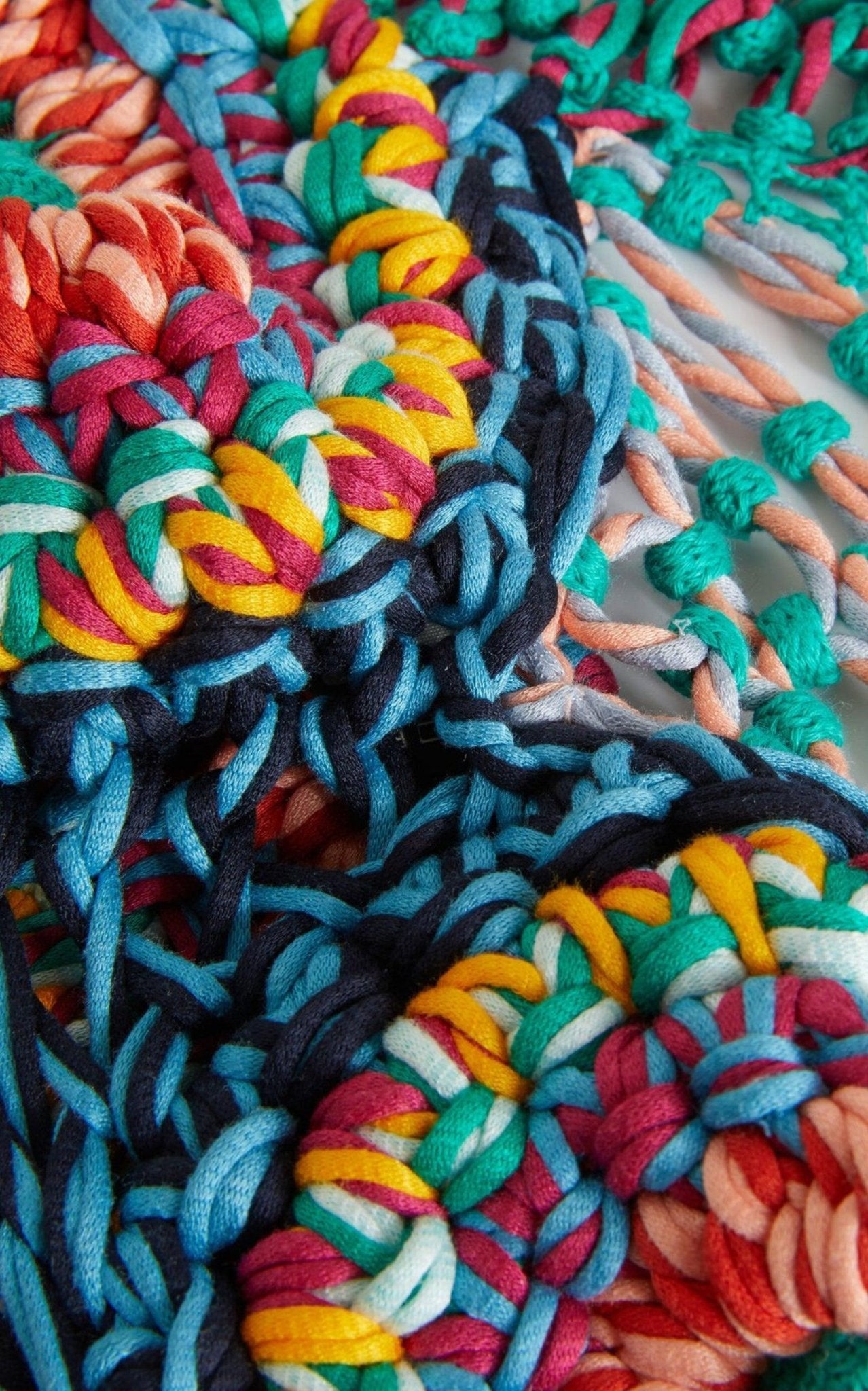 Dieses kurze Top ist handgehäkelt aus Baumwolle in einer lebendigen Farbpalette und hat Nackenbänder mit Quasten. Tragen Sie es mit einem Unterrock.