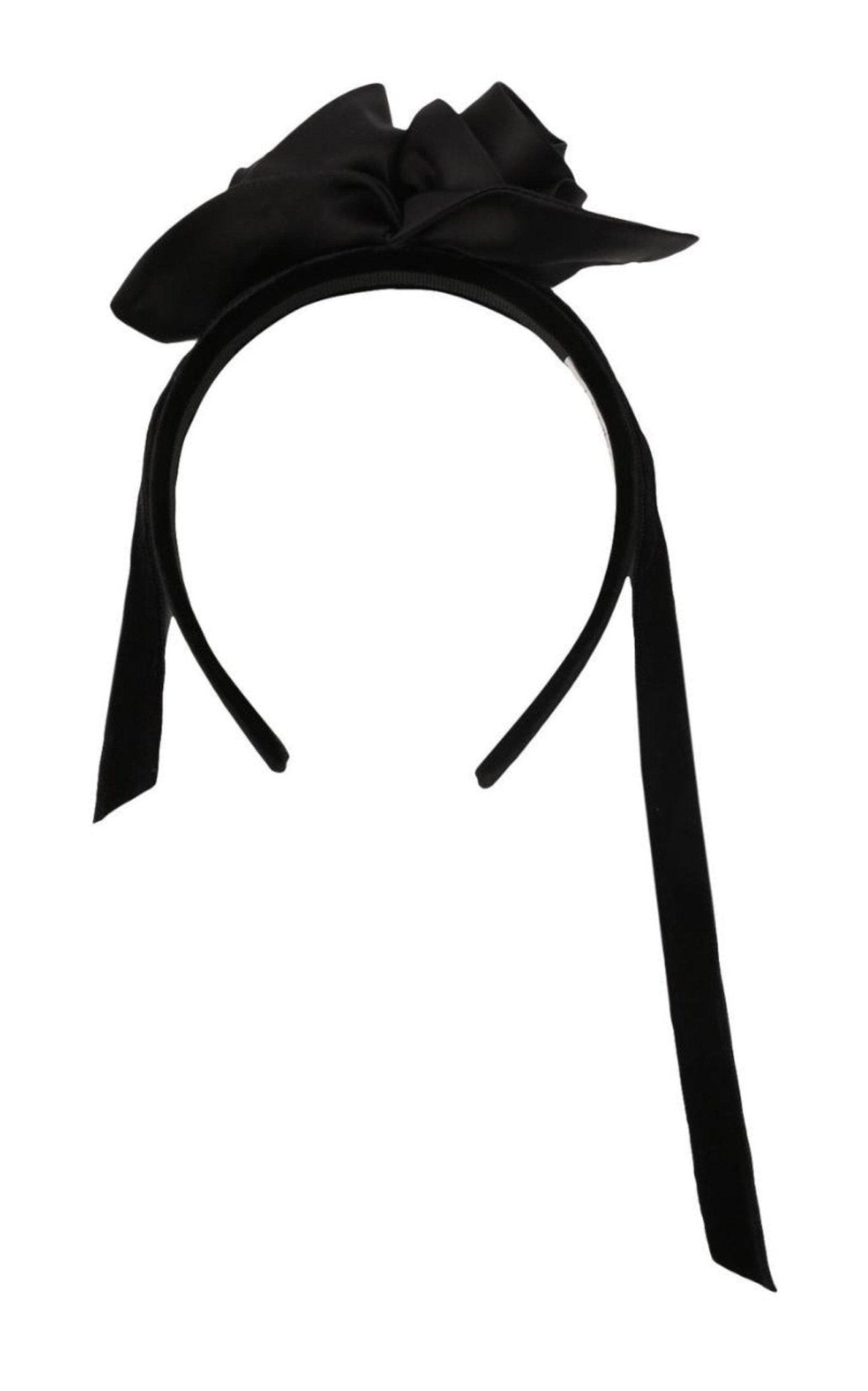Con una base de terciopelo que se puede asegurar en su lugar con un lazo, esta diadema de Alessandra Rich está adornada con un aplique de rosa de satén de seda para una apariencia romántica pero refinada.