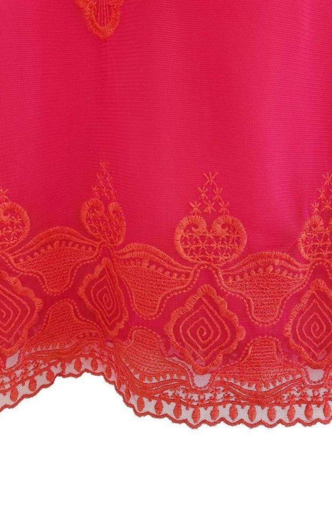 Gasa bordada en color fucsia y rojo.