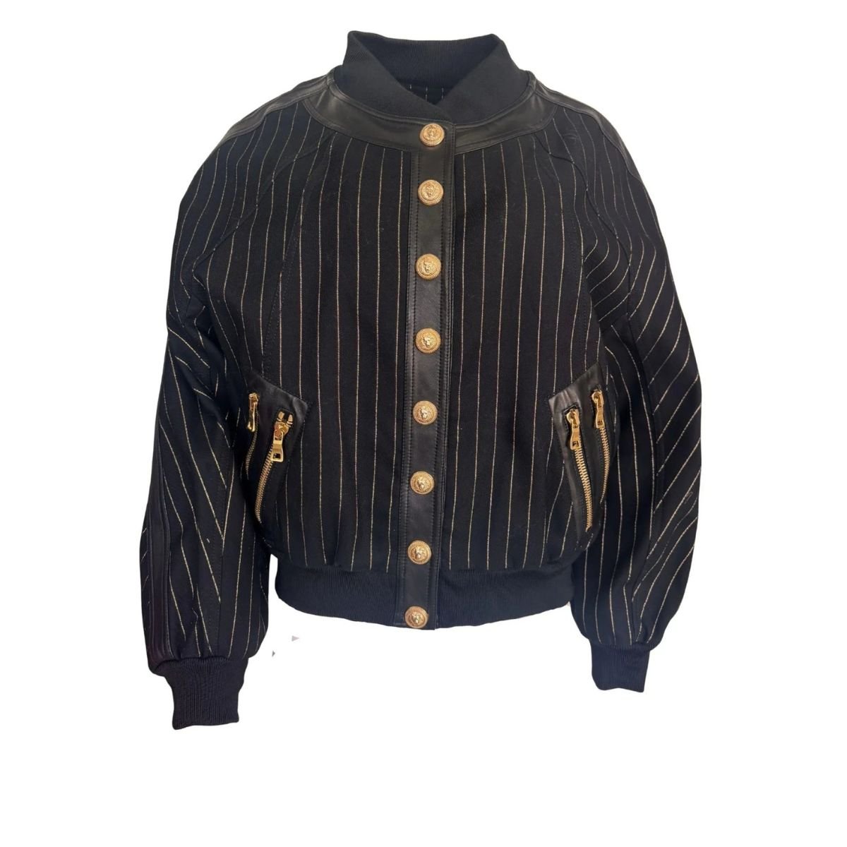Balmain Gestreifte Baumwoll-Teddyjacke in Schwarz und Gold