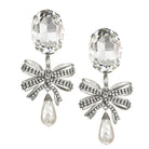 Pendientes colgantes de perlas adornados con cristales y lazo.