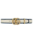 Inspirado en los bolsos GG Marmont, este cinturón se presenta en piel blanca con efecto matelassé diagonal.