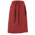 Con tejido jacquard GG rojo y blanco y ribete de bolsillo y lazo en la cintura de cuero negro.