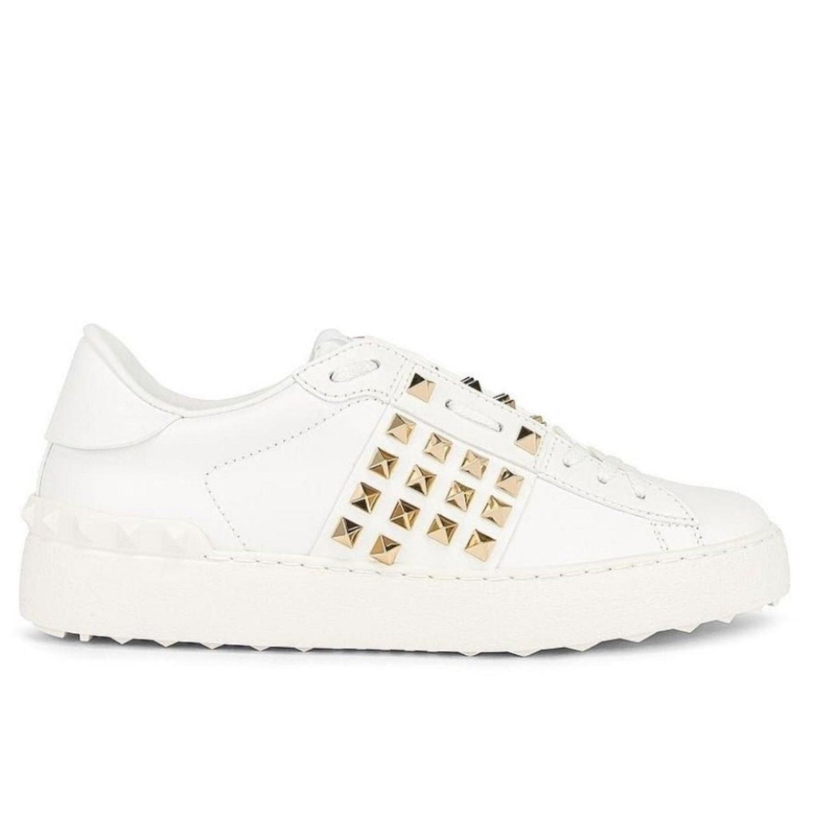 Los tachones piramidales en tono dorado añaden un toque de glamour característico a una zapatilla con cordones que eleva instantáneamente tu estilo urbano.