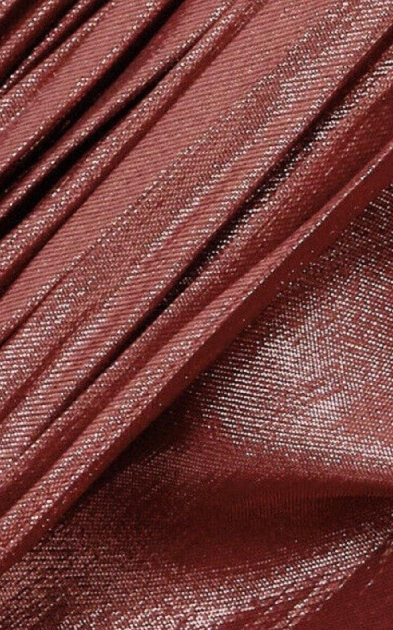هذا الفستان من غوتشي مصنوع في إيطاليا من قماش لاميه برونزي لامع ممزوج بالحرير، مع كشكشة متدفقة على طول الجزء الأمامي وطبقة خارجية واسعة بتأثير الرداء تخطف الأنفاس عند المشي.