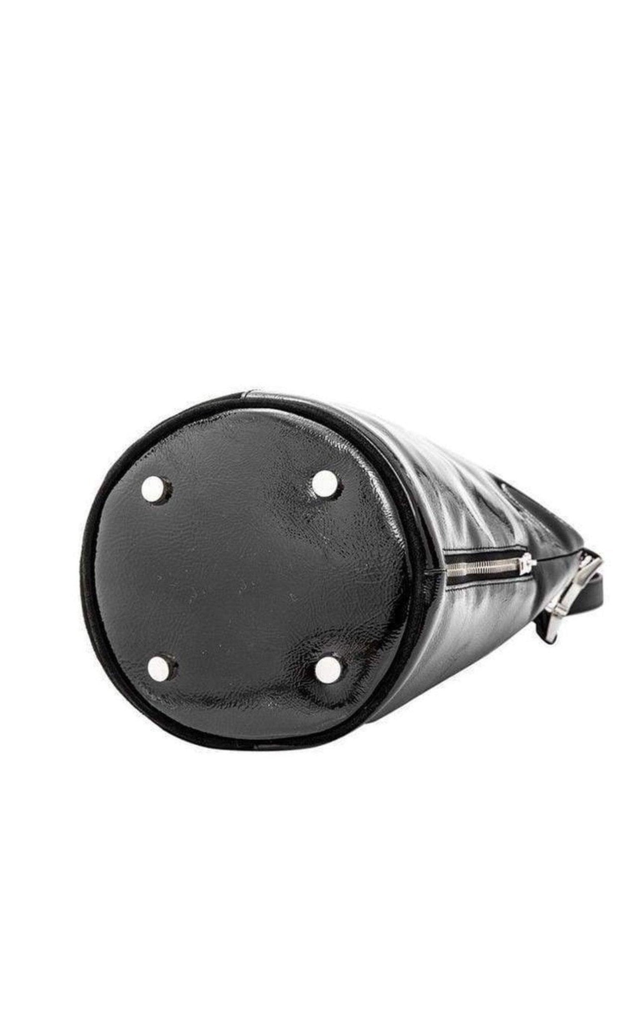 This black Attica tote bag is crafted from calf suede and patent leather and features purse feet, a main internal compartment, an internal zipped pocket, a chain top handle, a side press buckle fastening and a panelled design.