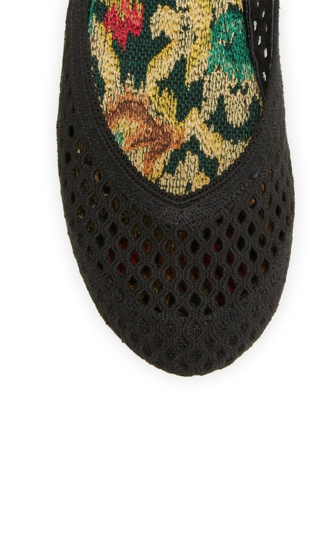 La ballerine à lacets Dior Poème est une création moderne et élégante. Confectionnée en coton noir brodé à effet ajouré, elle est ornée d'un motif cachemire multicolore Dior sur la semelle intérieure et d'une abeille et de la signature « CD » à l'arrière.