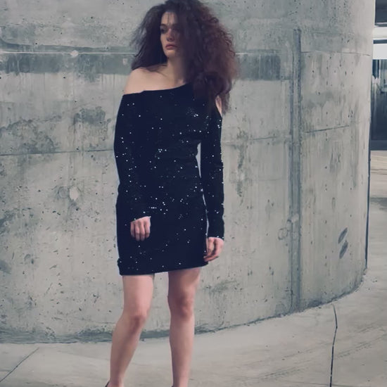 Luminous crystal embellishments and an alluring asymmetric neckline combine to create a modern mix on a wardrobe staple. Made in Italy from luxurious crepe jersey, this bold dress is designed with a figure-hugging silhouette and a concealed zipper to ensure a secure fit all night.
